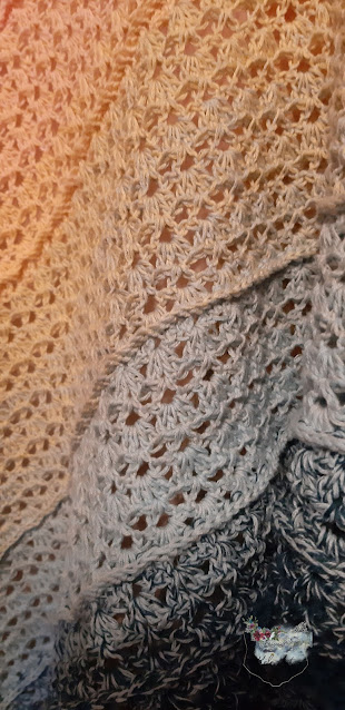 7. Moje zakończenie chusty to 3 oczka łańcuszka co 2 słupki (najlepiej przerabiać zakończenie na rzędzie typu 5).
